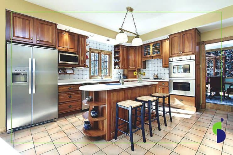 Normalmente, se trata de un diseño de cocina integral de gran formato, por ejemplo, las que tienen isla en «U».